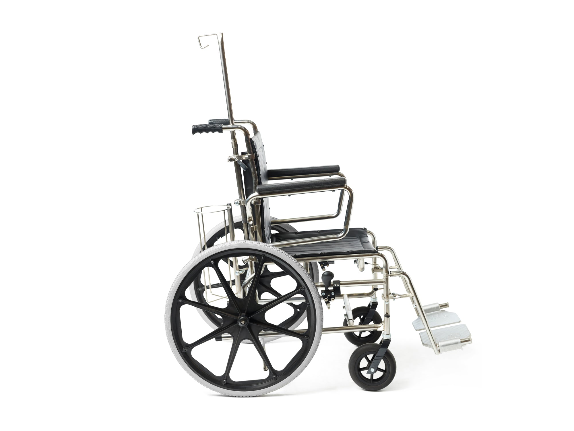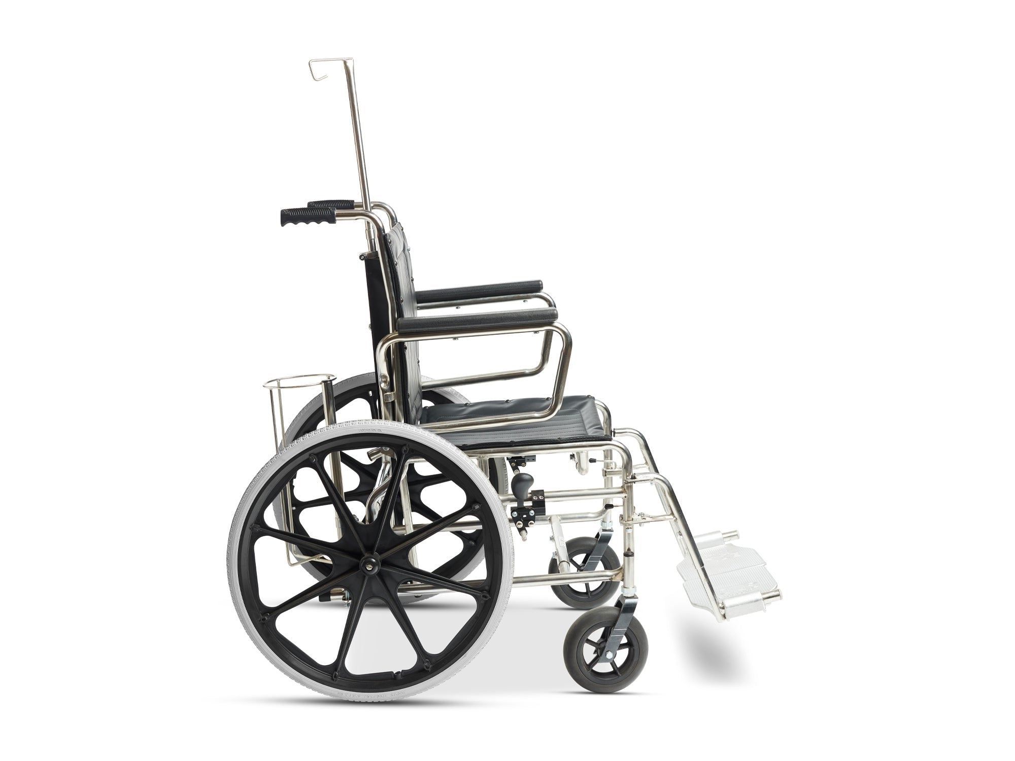 The WardGlide Chair is designed and constructed for the rigorous demands of a hospital or care facility. It has a solid non-folding frame to ensure maximum strength and durability. The swing-away leg rests are deliberately non-removeable to ensure that no parts go missing. The wheels are made of a durable plastic for ease of cleaning. It is available with several options such as an IV pole and oxygen bottle carrier.