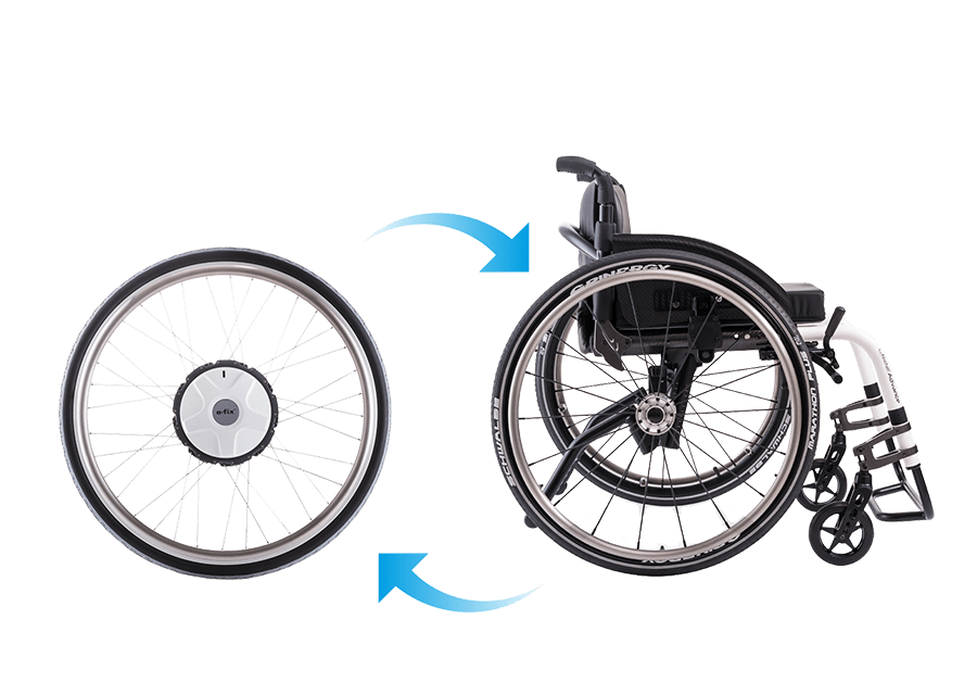 Turn your manual wheelchair into a compact electric wheelchair with the e-fix add-on drive. The drive can be individually programmed and can therefore be adapted perfectly to your personal needs. The electric add-on drive is the simple way to increase your freedom of movement. The e-fix also allows you to cover greater distances and handle slopes effortlessly.