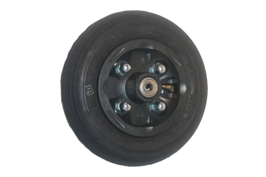 Wheel fitted with (BNM) Black Non-Marking rubber tyre suitable for split Aluminium hub.