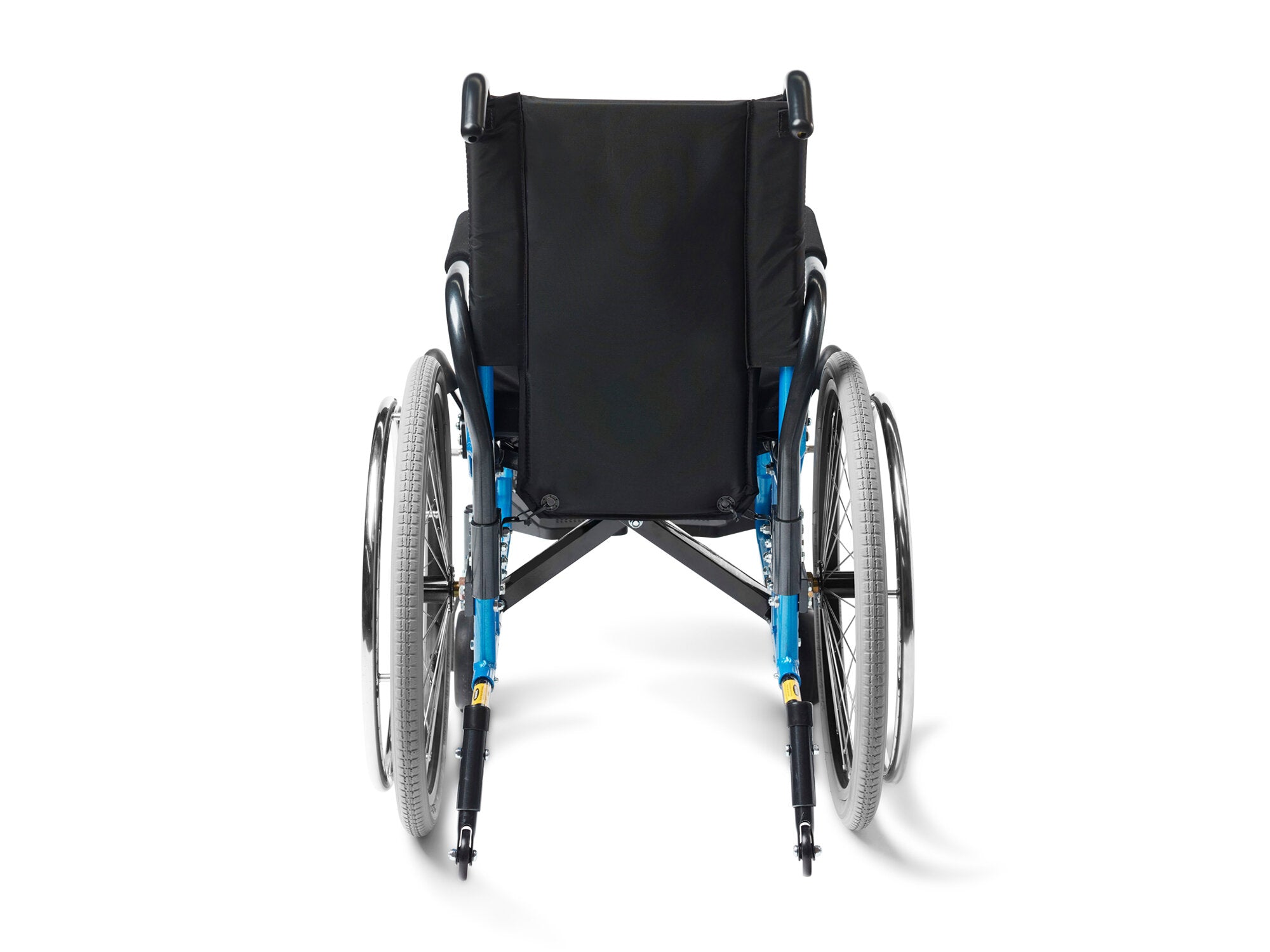 This is a sports-style manual wheelchair designed for active kids. It has a proven, durable folding frame, and a lowered seat height.  Children will love selecting from the incredible range of custom colours.